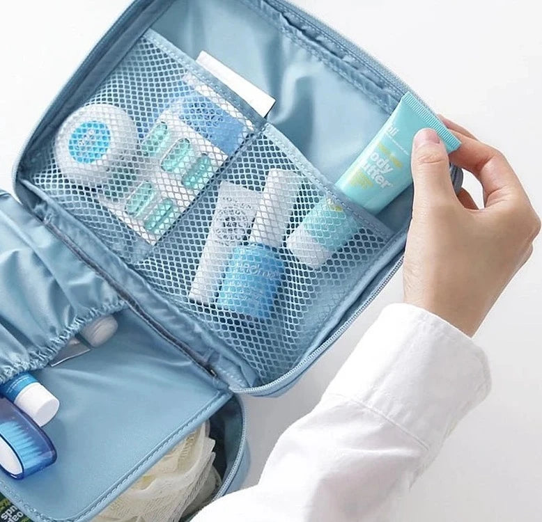 Organize your beauty essentials in style with our Blue Cherries Cosmetic Bag. This waterproof toiletries organizer is designed to keep your makeup and skincare products safe and secure. With ample storage space, it's perfect for travelers or everyday use. The charming blue cherries design adds a playful touch to your beauty routine. Whether you're at home or on the go, this makeup case ensures your cosmetics are always within reach and neatly organized.