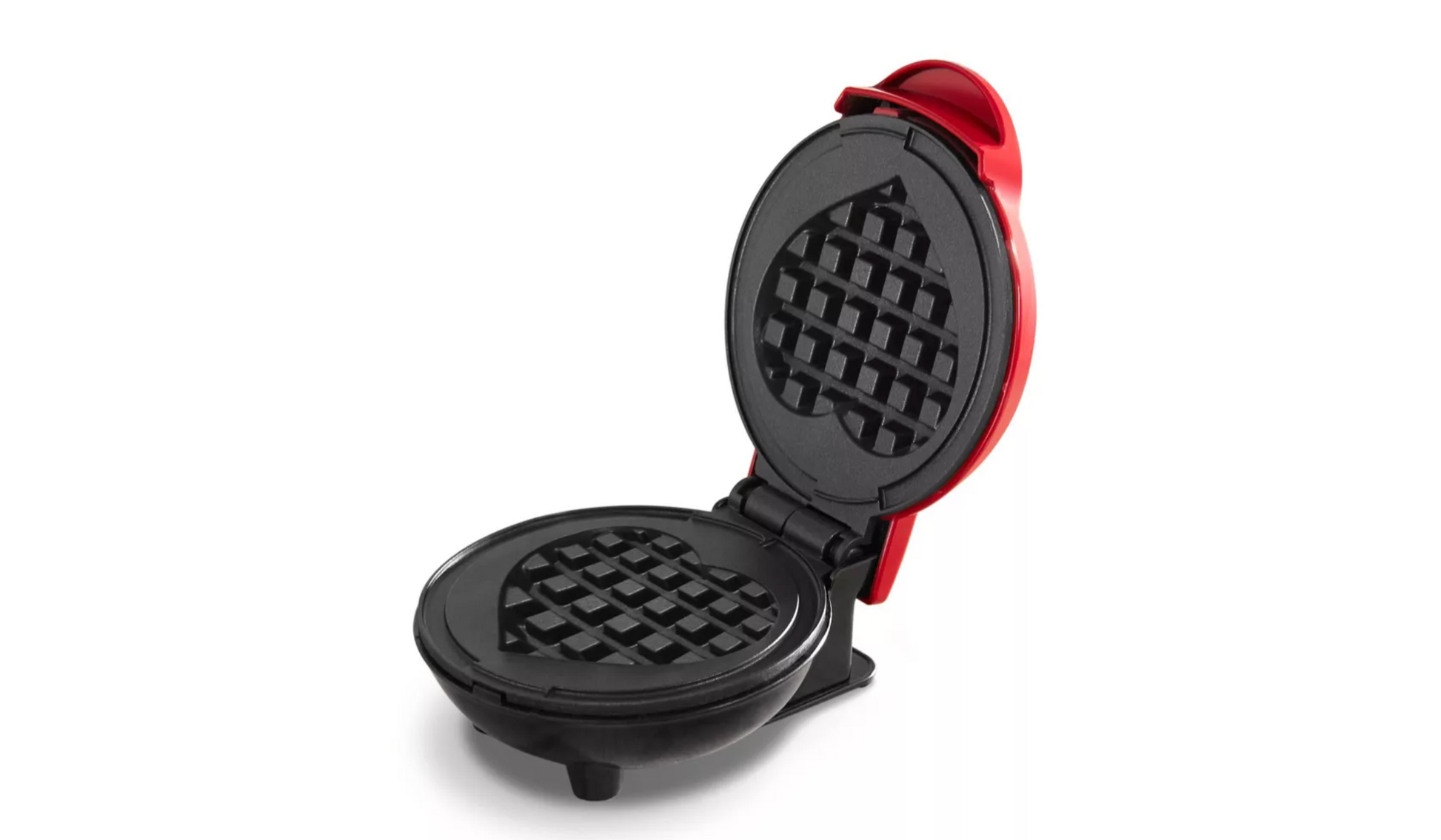 The Heart Mini Waffle Maker makes snack-sized, heart-shaped waffles in minutes.